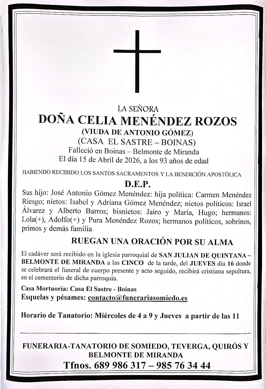 FUNERARIA SOMIEDO QUIRÓS TEVERGA BELMONTE DE MIRANDA |
