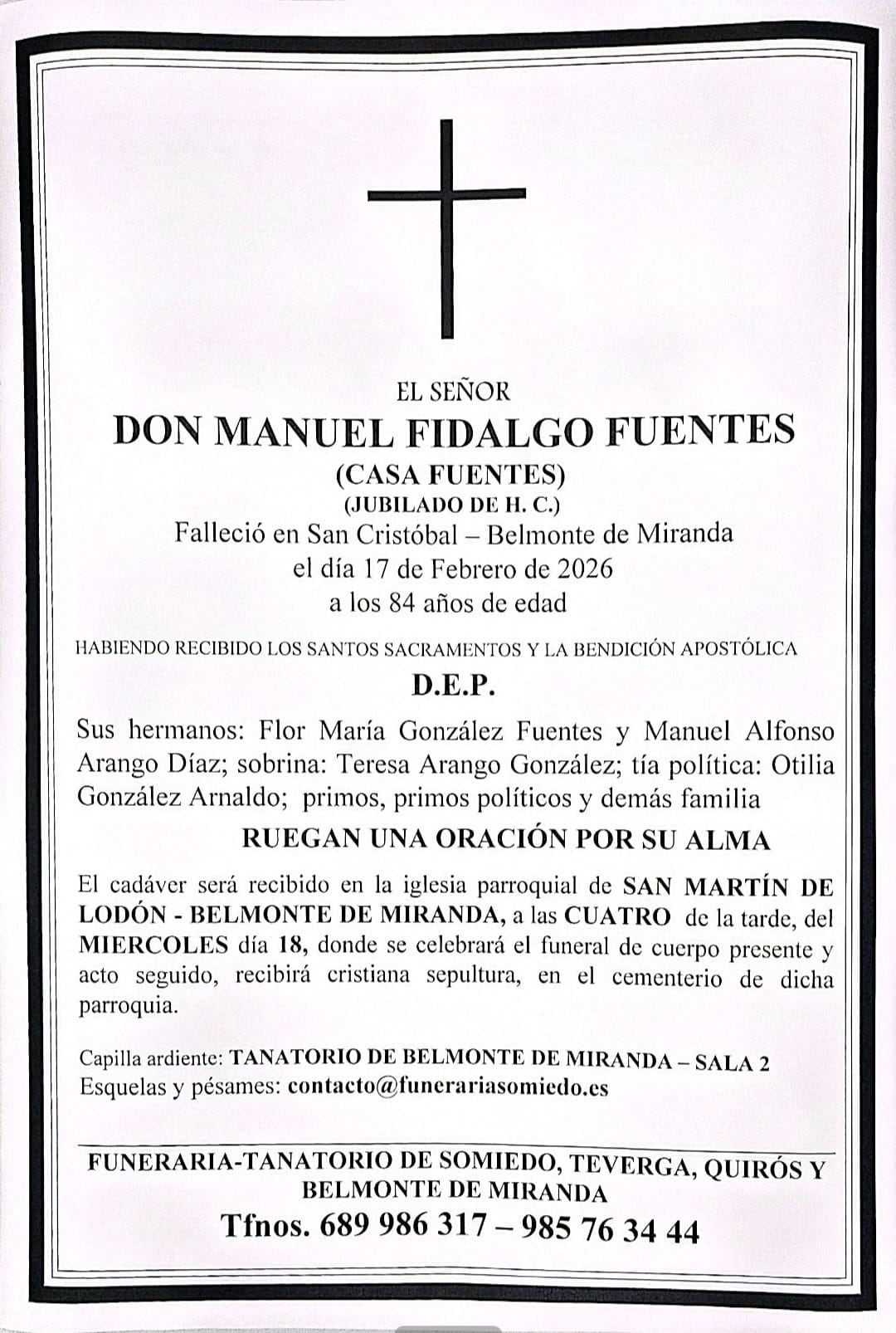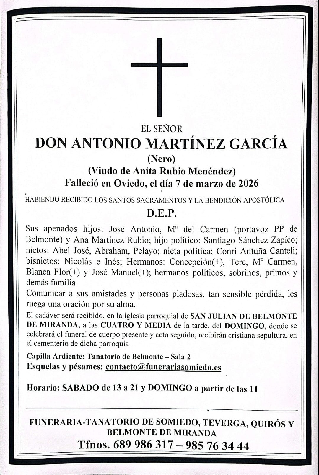 FUNERARIA SOMIEDO QUIRÓS TEVERGA BELMONTE DE MIRANDA
