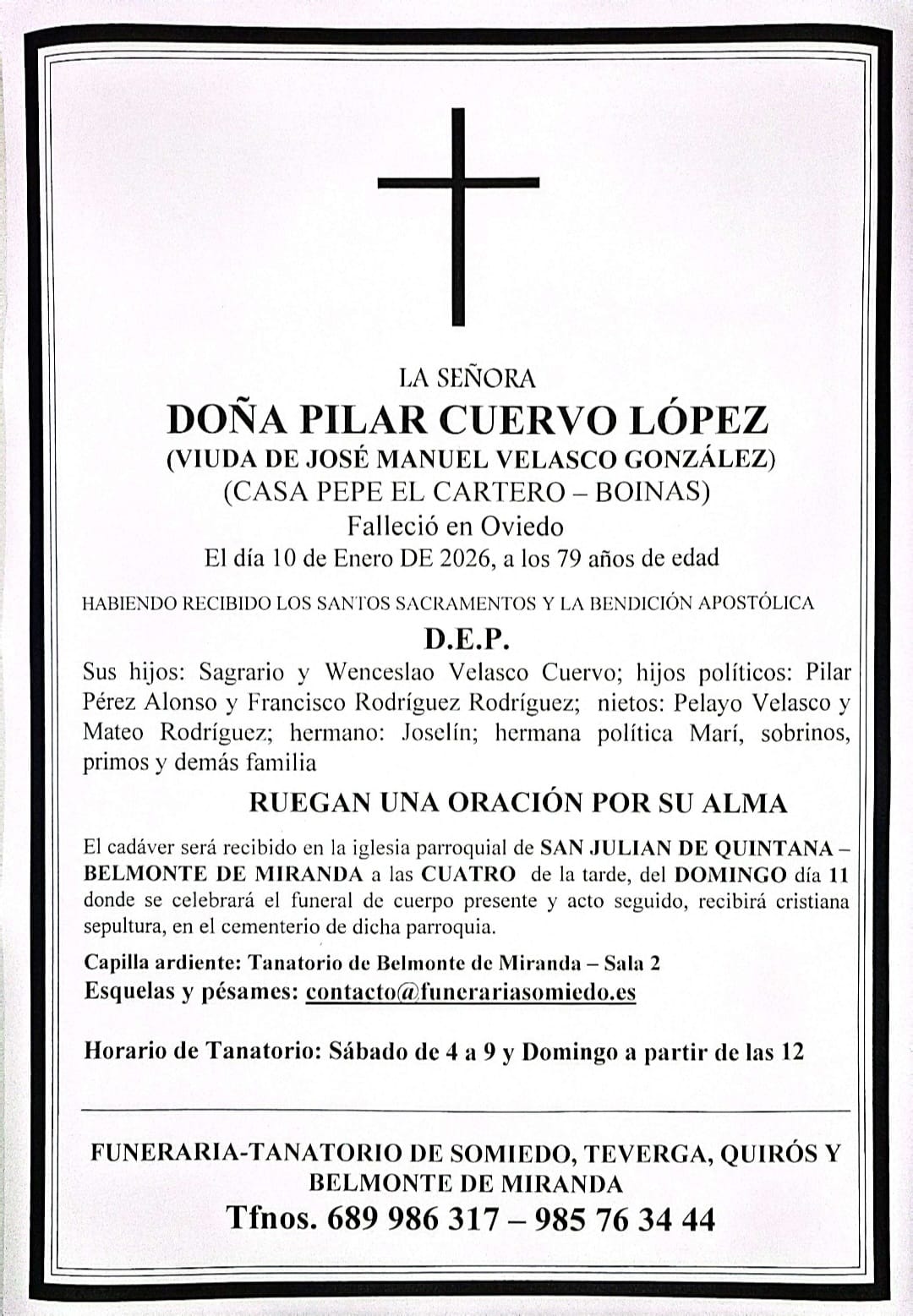 FUNERARIA SOMIEDO QUIRÓS TEVERGA BELMONTE DE MIRANDA